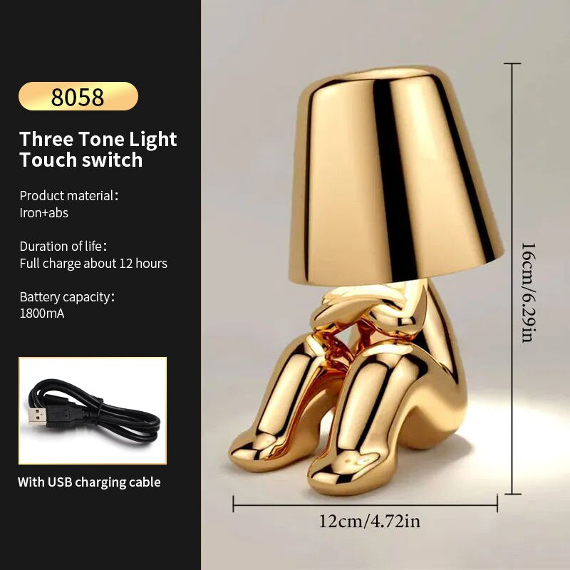 Introducing the Golden Man Night Light - the perfect solution for adding a touch of sophistication to your home or business with its adjustable and dimmable lighting, and unique and stylish decor.
